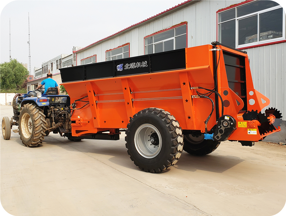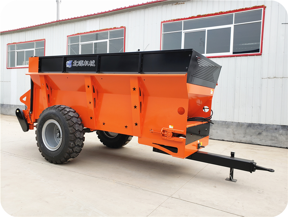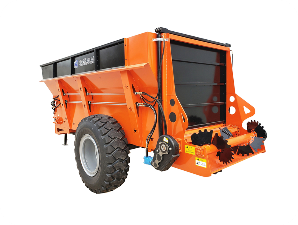 2FGH-H系列横绞龙撒粪机,用于抛撒各种干湿粪肥,特别是含水量大的黏湿粪肥和大块粪肥。可使抛撒肥料被充分破碎、均匀抛撒,具有较好的粉碎及撒布效果。该机由拖拉机牵引带动,撒肥车肥料输送系统直接采用拖拉机液压输出动力驱动,带动车厢内部的输送链自动把肥料向后输送,肥料输送快慢可调节;肥料抛撒系统由拖拉机后动力输出轴驱动,通过高速旋转的横螺旋绞龙装置将肥料打碎并均匀抛撒出去,施肥量可调节。该扬粪机适用于大型农场、牧场、草地等地的粪肥、有机肥抛撒作业,可实现大规模统一、高效施肥作业,降低劳动强度,提高施肥效率,节省成本,实现各种经济效益。