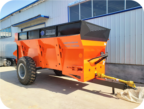 2FGH-H系列横绞龙撒粪机,用于抛撒各种干湿粪肥,特别是含水量大的黏湿粪肥和大块粪肥。可使抛撒肥料被充分破碎、均匀抛撒,具有较好的粉碎及撒布效果。该机由拖拉机牵引带动,撒肥车肥料输送系统直接采用拖拉机液压输出动力驱动,带动车厢内部的输送链自动把肥料向后输送,肥料输送快慢可调节;肥料抛撒系统由拖拉机后动力输出轴驱动,通过高速旋转的横螺旋绞龙装置将肥料打碎并均匀抛撒出去,施肥量可调节。该扬粪车适用于大型农场、牧场、草地等地的粪肥、有机肥抛撒作业,可实现大规模统一、高效施肥作业,降低劳动强度,提高施肥效率,节省成本,实现各种经济效益。