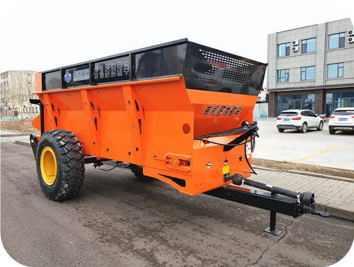2FGH-H系列横绞龙撒肥车,用于抛撒各种干湿粪肥,特别是含水量大的黏湿粪肥和大块粪肥。可使抛撒肥料被充分破碎、均匀抛撒,具有较好的粉碎及撒布效果。该机由拖拉机牵引带动,撒肥车肥料输送系统直接采用拖拉机液压输出动力驱动,带动车厢内部的输送链自动把肥料向后输送,肥料输送快慢可调节;肥料抛撒系统由拖拉机后动力输出轴驱动,通过高速旋转的横螺旋绞龙装置将肥料打碎并均匀抛撒出去,施肥量可调节。该撒粪机适用于大型农场、牧场、草地等地的粪肥、有机肥抛撒作业,可实现大规模统一、高效施肥作业,降低劳动强度,提高施肥效率,节省成本,实现各种经济效益。