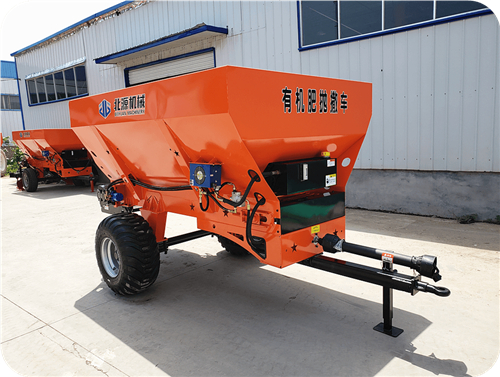 2FGH-H系列横绞龙撒肥车,用于抛撒各种干湿粪肥,特别是含水量大的黏湿粪肥和大块粪肥。可使抛撒肥料被充分破碎、均匀抛撒,具有较好的粉碎及撒布效果。该撒粪机利用拖拉机动力输出作为驱动,带动车厢内部的输送链自动把肥料向后输送,肥料输送快慢可调节,通过高速旋转的横螺旋绞龙装置将肥料打碎并均匀抛撒出去,施肥量可调节。该撒粪车适用于大型农场、牧场、草地等地的粪肥、有机肥抛撒作业,可实现大规模统一、高效施肥作业,降低劳动强度,提高施肥效率,节省成本,实现各种经济效益