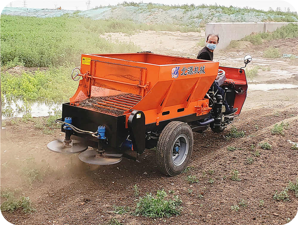 2FZGB-SL系列三轮车自走式扬粪机,采用农用三轮车底盘架构,设计配备肥料输送装置和肥料抛撒装置。肥料抛撒装置有卧式螺旋撒布和立式双圆盘撒布可选。该大棚撒粪机自带柴油机动力,无需拖拉机带动,一体机设计,结构紧凑,转向灵活,尤其适用于大棚、丘陵、小块田地作业。该大棚扬粪机适合抛撒各类厩肥、粪肥、有机肥、石灰、酒糟、糖渣、颗粒肥等不同形态的物料。操作简单,适用性广,可达到提高施肥效率、降低劳动强度、改善土壤结构等目的。