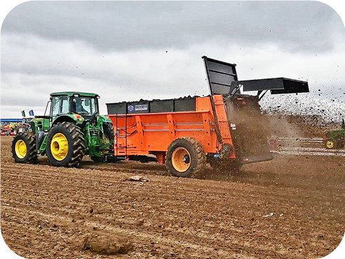 2FGH-S系列双竖绞龙扬粪车,用于抛撒各种干湿粪肥,特别是含水量大的黏湿粪肥和大块粪肥。可使抛撒肥料被充分破碎、均匀抛撒,具有较好的粉碎及撒布效果。该机由拖拉机牵引带动,撒肥车肥料输送系统直接采用拖拉机液压输出动力驱动,带动车厢内部的输送链自动把肥料向后输送,肥料输送快慢可调节;肥料抛撒系统由拖拉机后动力输出轴驱动,通过高速旋转的双竖螺旋绞龙装置将肥料打碎并均匀抛撒出去,施肥量可调节。该撒粪车适用于大型农场、牧场、草地等地的粪肥、有机肥抛撒作业,可实现大规模统一、高效施肥作业,降低劳动强度,提高施肥效率,节省成本,实现各种经济效益。