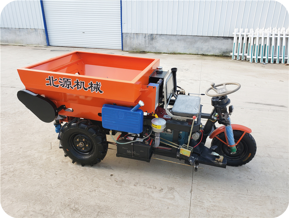 2FZGB-SL系列三轮车自走式撒肥车,采用农用三轮车底盘架构,设计配备肥料输送装置和肥料抛撒装置。肥料抛撒装置有卧式螺旋撒布和立式双圆盘撒布可选。自带柴油机动力,无需拖拉机带动,一体机设计,结构紧凑,转向灵活,尤其适用于大棚、丘陵、小块田地作业。该大棚撒粪机适合抛撒各类厩肥、粪肥、有机肥、石灰、酒糟、糖渣、颗粒肥等不同形态的物料。操作简单,适用性广,可达到提高施肥效率、降低劳动强度、改善土壤结构等目的。