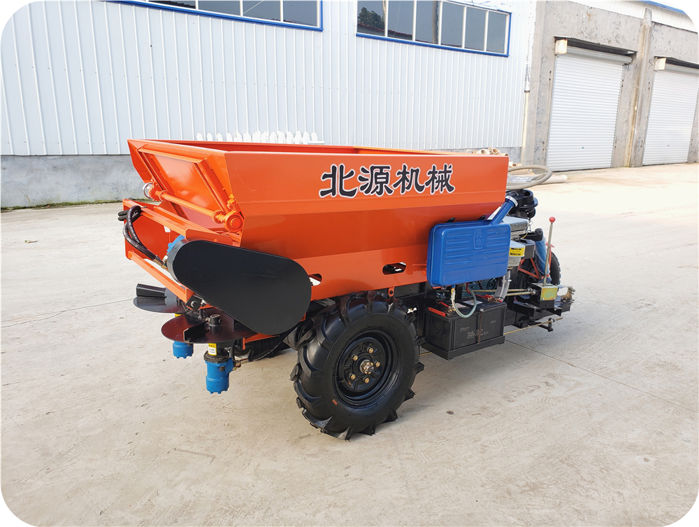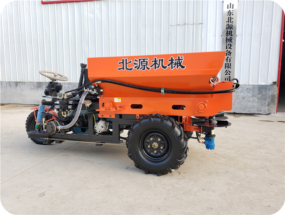 2FZGB-SL系列三轮车自走式大棚撒粪车,采用农用三轮车底盘架构,设计配备肥料输送装置和肥料抛撒装置。肥料抛撒装置有卧式螺旋撒布和立式双圆盘撒布可选。自带柴油机动力,无需拖拉机带动,一体机设计,结构紧凑,转向灵活,尤其适用于大棚、丘陵、小块田地作业。该撒粪车适合抛撒各类厩肥、粪肥、有机肥、石灰、酒糟、糖渣、颗粒肥等不同形态的物料。操作简单,适用性广,可达到提高施肥效率、降低劳动强度、改善土壤结构等目的。