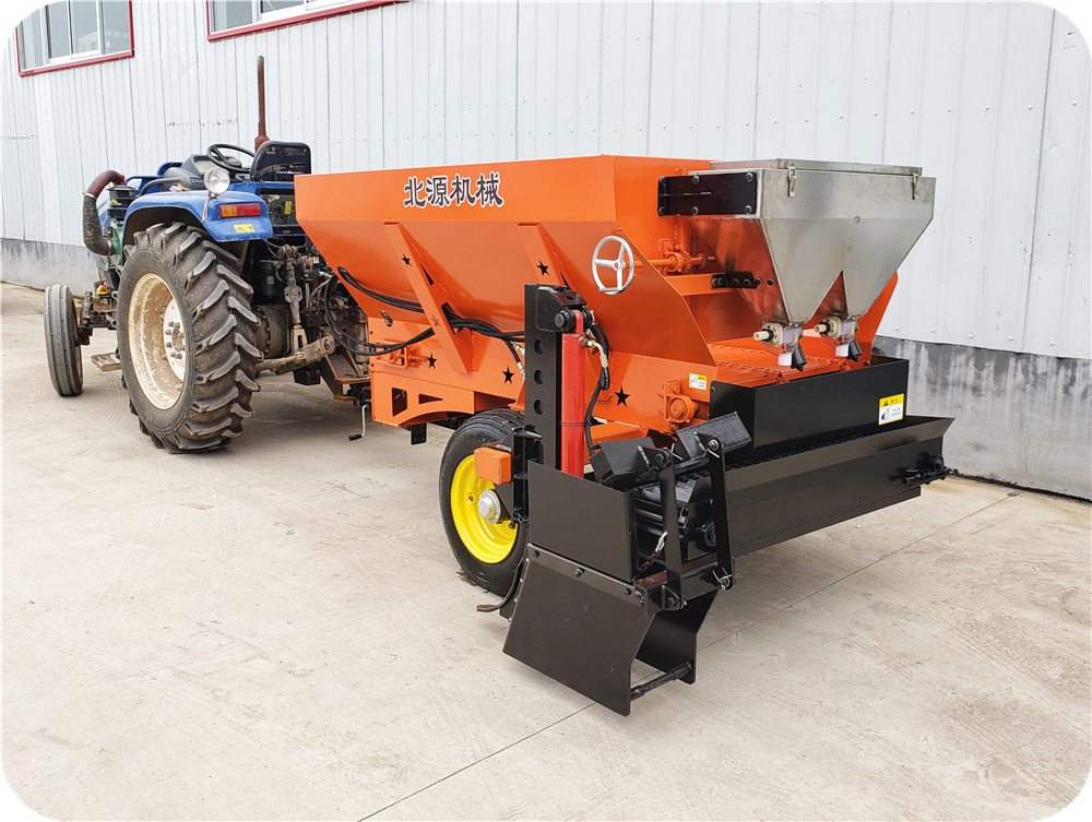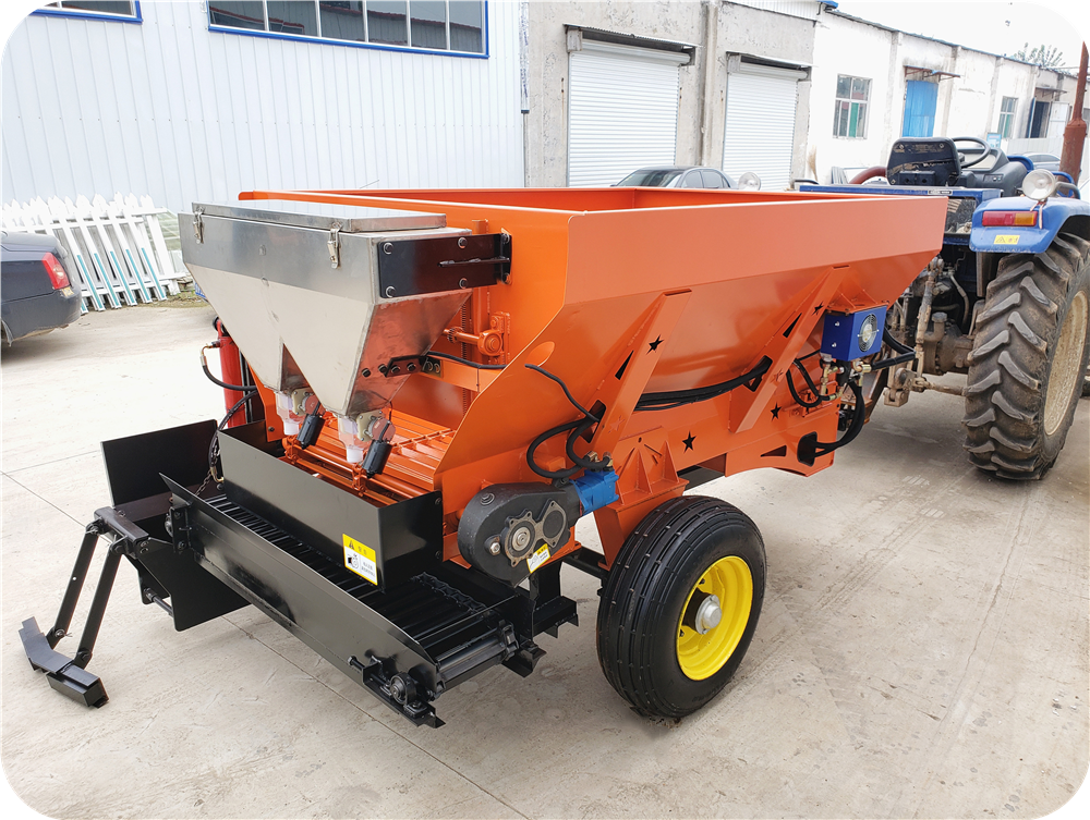 2FGS系列果园用有机肥施肥机,是在我公司原有2FGB系列双圆盘抛撒机技术基础上,根据果园(苹果园、葡萄园等)用户的施肥需求及方式进行定制设计。该施肥机适用于果园撒施各类有机肥(农家粪肥、粉末有机肥、颗粒有机肥等),同时有机肥车厢后方可增配备不锈钢颗粒肥斗,可同时撒播两种颗粒肥,由电机控制颗粒肥施肥作业,施肥量可调节,实现颗粒肥与有机肥混合撒施,满足不同果园施肥需求。