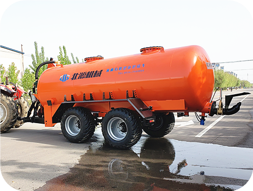 2FYP系列液态喷洒机(液体有机肥施肥罐车),以拖拉机后输出轴(540r/min)为动力,驱动真空泵进行工作,控制完成吸肥和喷肥工作。主泵、控制阀、承重车轴等部件采用进口产品,性能稳定可靠。该液态罐车罐体材质采用了压力容器专用高强度钢,罐体內外均喷有防腐、耐酸碱性能优越的涂层,罐体内部集成有坚固的防浪涌挡板,保证罐体有足够的抗拉强度、冲击韧性与耐腐蚀性。罐体前部安装有液位显示仪,方便操作者实时观察罐体内液体容量变化。该机设计配备多级过载保护装置,对主泵、罐体、管道等进行压力保护。