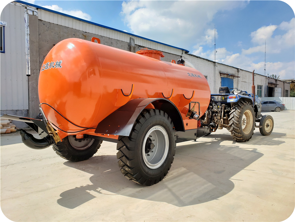 2FYP系列液态粪肥抛洒车(液体有机肥施肥罐车),以拖拉机后输出轴(540r/min)为动力,驱动真空泵进行工作,控制完成吸肥和喷肥工作。主泵、控制阀、承重车轴等部件采用进口产品,性能稳定可靠。该有机肥抛洒机罐体材质采用了压力容器专用高强度钢,罐体內外均喷有防腐、耐酸碱性能优越的涂层,罐体内部集成有坚固的防浪涌挡板,保证罐体有足够的抗拉强度、冲击韧性与耐腐蚀性。该液态肥抛洒机罐体前部安装有液位显示仪,方便操作者实时观察罐体内液体容量变化。该机设计配备多级过载保护装置,对主泵、罐体、管道等进行压力保护。