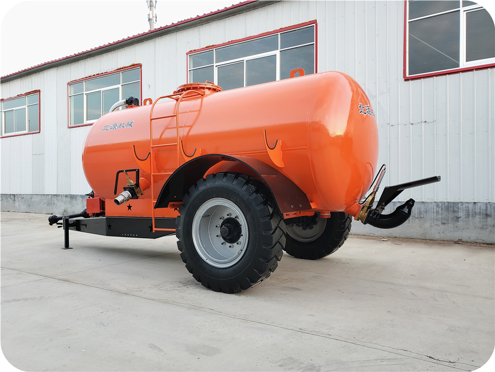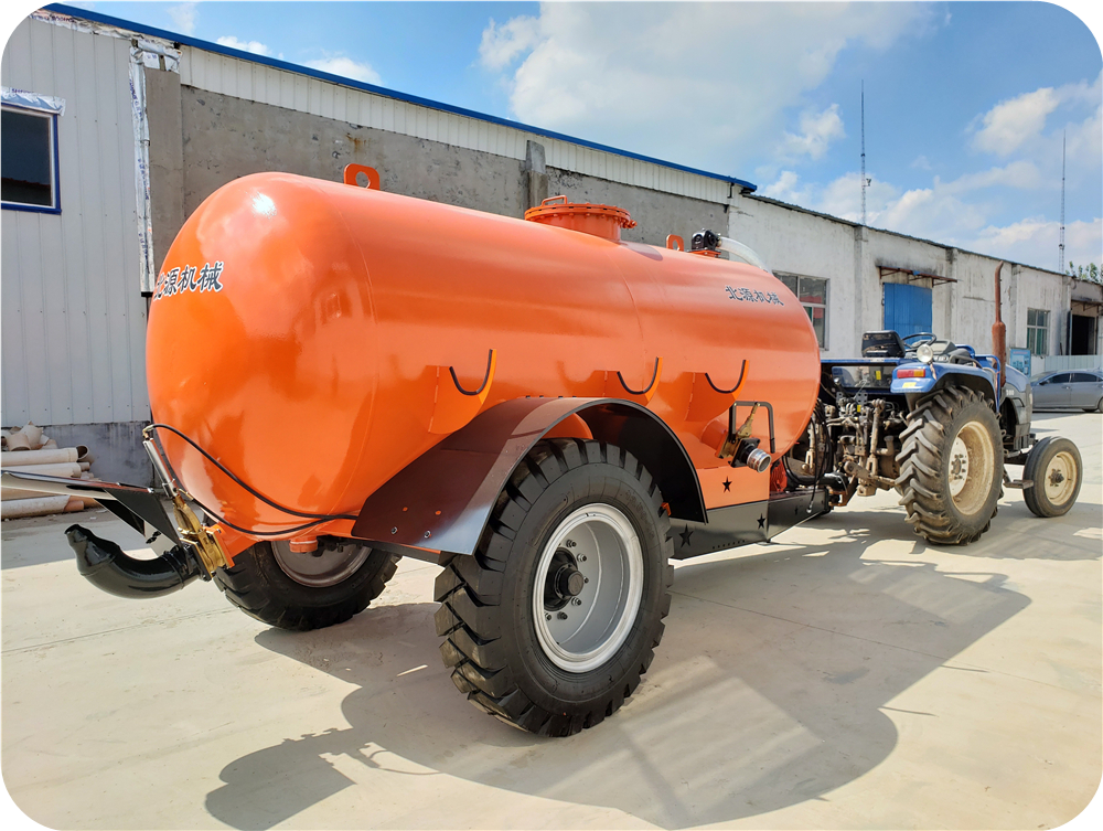 2FYP系列液态粪肥抛洒车(液体有机肥施肥罐车),以拖拉机后输出轴(540r/min)为动力,驱动真空泵进行工作,控制完成吸肥和喷肥工作。主泵、控制阀、承重车轴等部件采用进口产品,性能稳定可靠。该粪污施肥机罐体材质采用了压力容器专用高强度钢,罐体內外均喷有防腐、耐酸碱性能优越的涂层,罐体内部集成有坚固的防浪涌挡板,保证罐体有足够的抗拉强度、冲击韧性与耐腐蚀性。该施肥机罐体前部安装有液位显示仪,方便操作者实时观察罐体内液体容量变化。该机设计配备多级过载保护装置,对主泵、罐体、管道等进行压力保护。