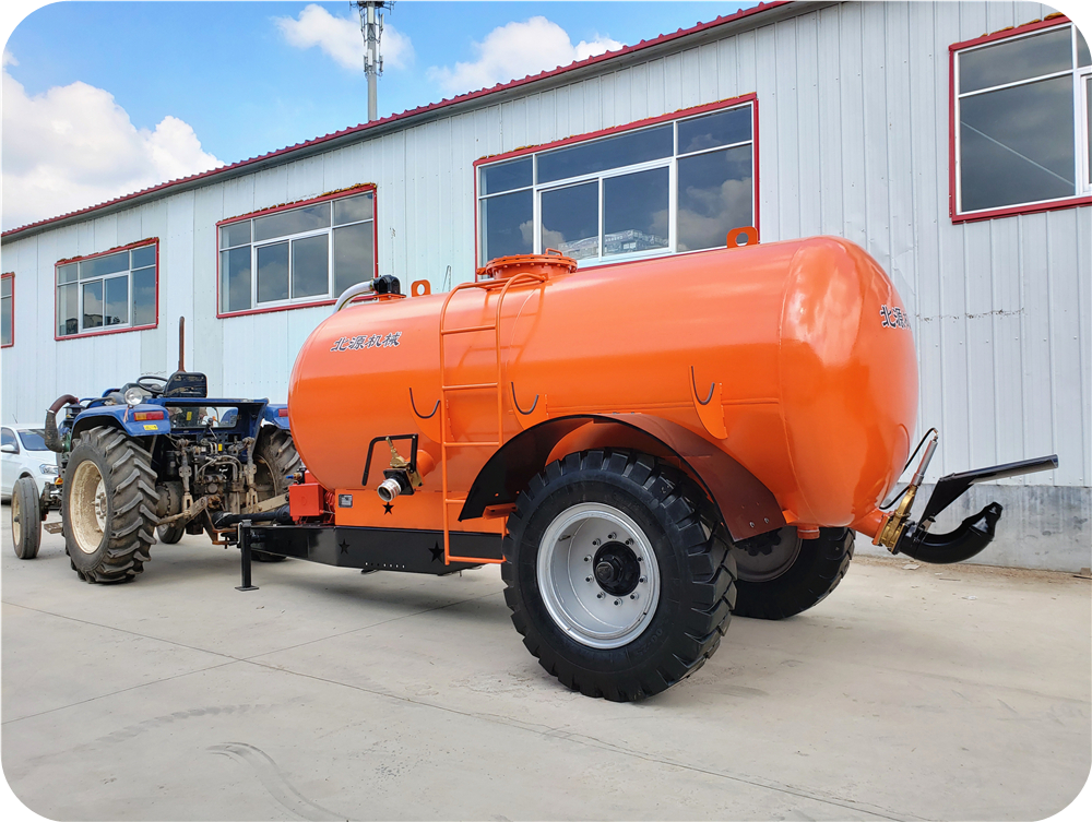 2FYP系列液态粪肥抛洒车(液体有机肥施肥罐车),以拖拉机后输出轴(540r/min)为动力,驱动真空泵进行工作,控制完成吸肥和喷肥工作。主泵、控制阀、承重车轴等部件采用进口产品,性能稳定可靠。该污水撒粪车罐体材质采用了压力容器专用高强度钢,罐体內外均喷有防腐、耐酸碱性能优越的涂层,罐体内部集成有坚固的防浪涌挡板,保证罐体有足够的抗拉强度、冲击韧性与耐腐蚀性。该撒粪车罐体前部安装有液位显示仪,方便操作者实时观察罐体内液体容量变化。该机设计配备多级过载保护装置,对主泵、罐体、管道等进行压力保护。