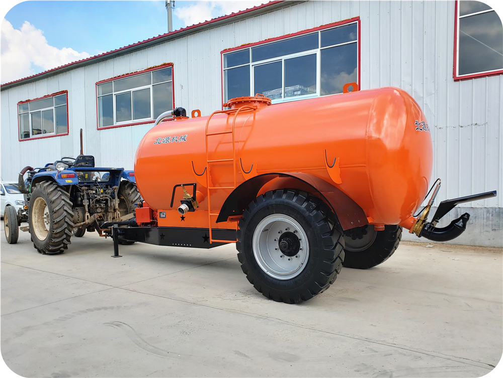 2FYP系列液态粪肥抛洒车(液体有机肥施肥罐车),以拖拉机后输出轴(540r/min)为动力,驱动真空泵进行工作,控制完成吸肥和喷肥工作。主泵、控制阀、承重车轴等部件采用进口产品,性能稳定可靠。该撒粪车洒粪机罐体材质采用了压力容器专用高强度钢,罐体內外均喷有防腐、耐酸碱性能优越的涂层,罐体内部集成有坚固的防浪涌挡板,保证罐体有足够的抗拉强度、冲击韧性与耐腐蚀性。该液态洒粪机罐体前部安装有液位显示仪,方便操作者实时观察罐体内液体容量变化。该机设计配备多级过载保护装置,对主泵、罐体、管道等进行压力保护。