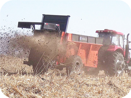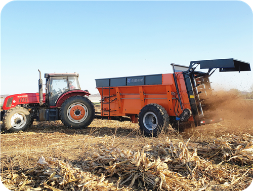 2FGH-S系列双竖绞龙撒肥车,用于抛撒各种干湿粪肥,特别是含水量大的黏湿粪肥和大块粪肥。可使抛撒肥料被充分破碎、均匀抛撒,具有较好的粉碎及撒布效果。该有机肥撒肥车由拖拉机牵引带动,撒肥车肥料输送系统直接采用拖拉机液压输出动力驱动,带动车厢内部的输送链自动把肥料向后输送,肥料输送快慢可调节;肥料抛撒系统由拖拉机后动力输出轴驱动,通过高速旋转的双竖螺旋绞龙装置将肥料打碎并均匀抛撒出去,施肥量可调节。该大型撒肥车适用于大型农场、牧场、草地等地的粪肥、有机肥抛撒作业,可实现大规模统一、高效施肥作业,降低劳动强度,提高施肥效率,节省成本,实现各种经济效益。