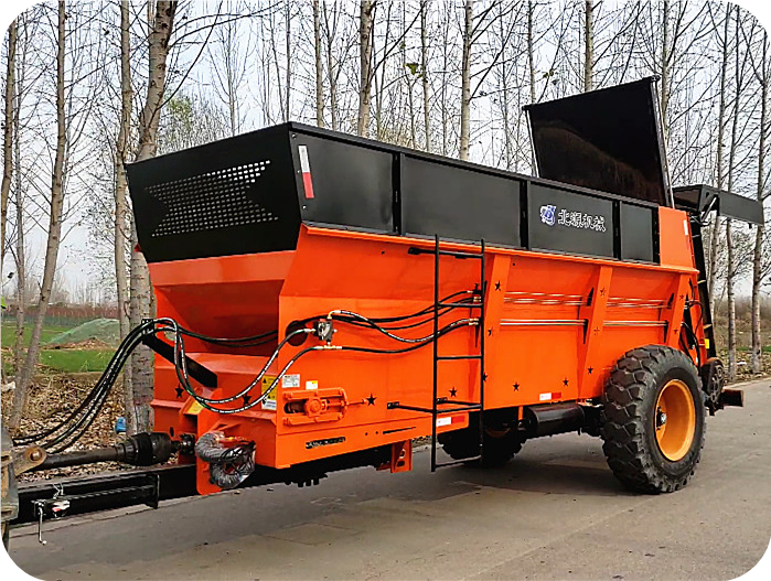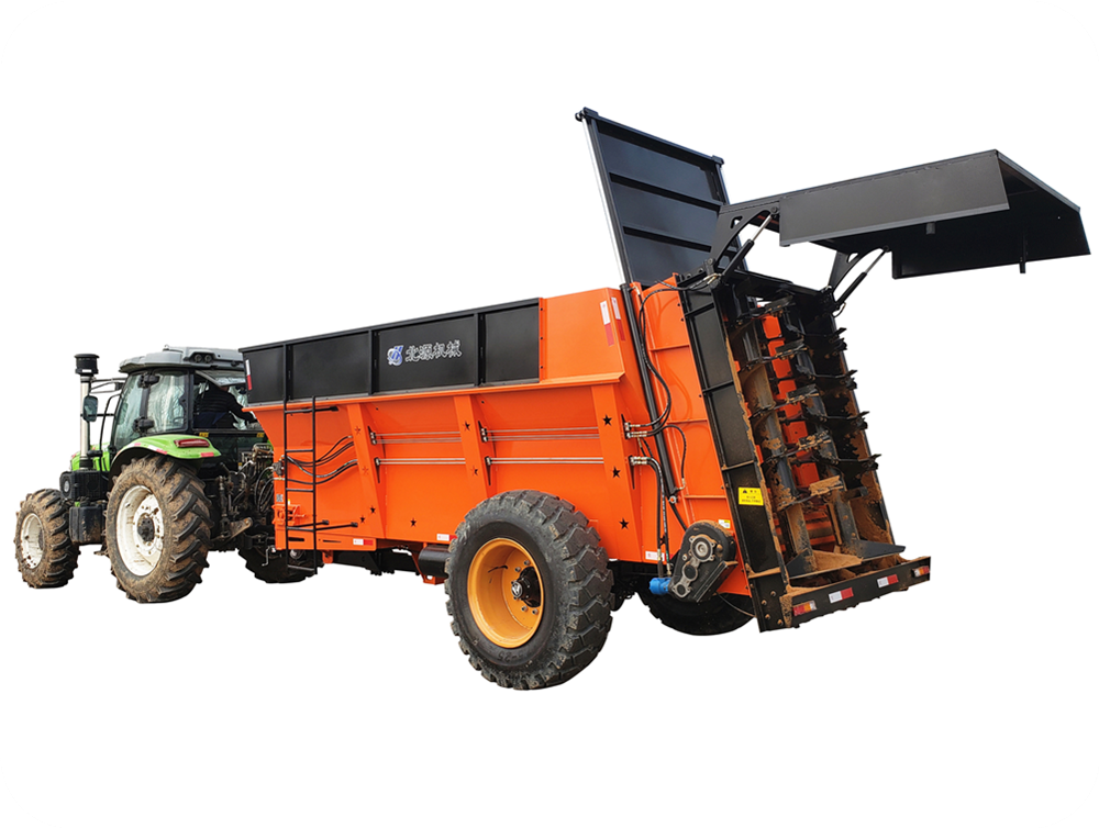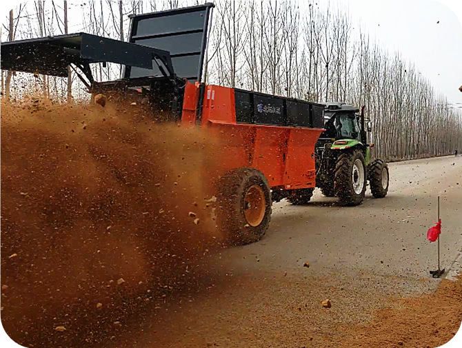 2FGH-S系列双竖绞龙撒粪车,用于抛撒各种干湿粪肥,特别是含水量大的黏湿粪肥和大块粪肥。可使抛撒肥料被充分破碎、均匀抛撒,具有较好的粉碎及撒布效果。该农家肥撒粪车由拖拉机牵引带动,撒肥车肥料输送系统直接采用拖拉机液压输出动力驱动,带动车厢内部的输送链自动把肥料向后输送,肥料输送快慢可调节;肥料抛撒系统由拖拉机后动力输出轴驱动,通过高速旋转的双竖螺旋绞龙装置将肥料打碎并均匀抛撒出去,施肥量可调节。该抛粪车适用于大型农场、牧场、草地等地的粪肥、有机肥抛撒作业,可实现大规模统一、高效施肥作业,降低劳动强度,提高施肥效率,节省成本,实现各种经济效益。