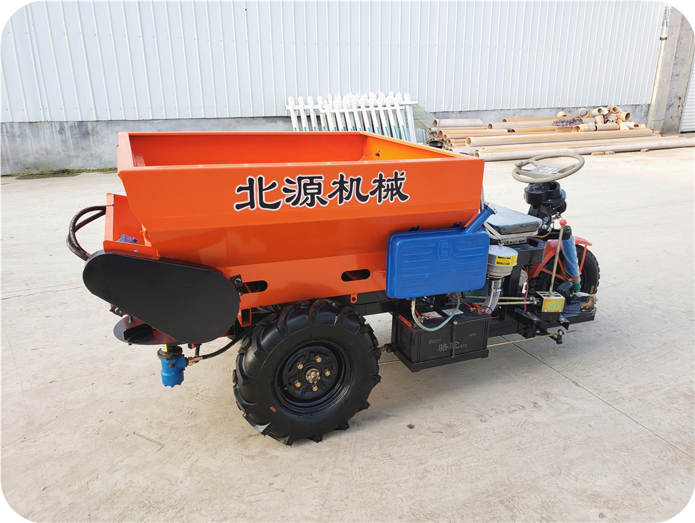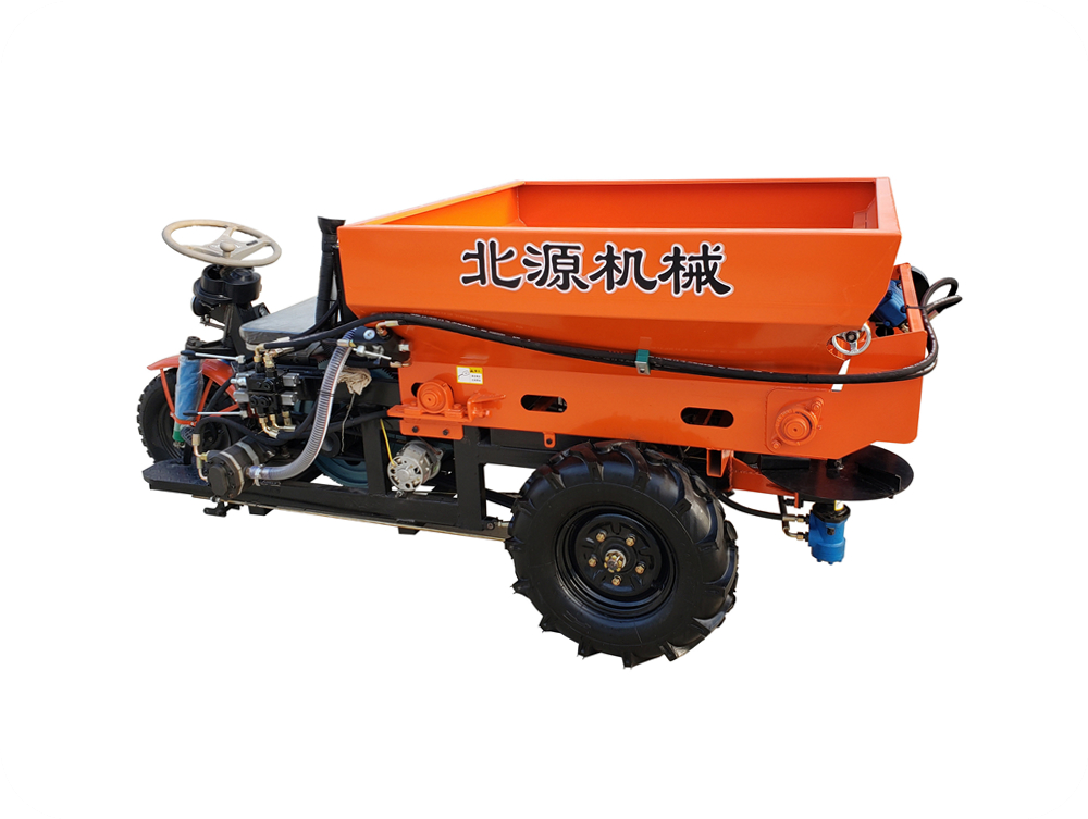 2FZGB-SL系列三轮车自走式大棚撒粪车,采用农用三轮车底盘架构,设计配备肥料输送装置和肥料抛撒装置。肥料抛撒装置有卧式螺旋撒布和立式双圆盘撒布可选。自带柴油机动力,无需拖拉机带动,一体机设计,结构紧凑,转向灵活,尤其适用于大棚、丘陵、小块田地作业。该撒粪车适合抛撒各类厩肥、粪肥、有机肥、石灰、酒糟、糖渣、颗粒肥等不同形态的物料。操作简单,适用性广,可达到提高施肥效率、降低劳动强度、改善土壤结构等目的。
